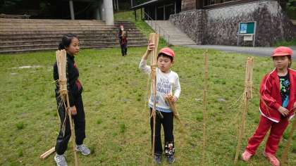 出来上がった松明を地面に設置していきます!