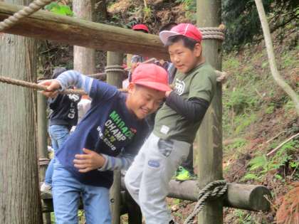 冒険の森でアスレチックを楽しみました。