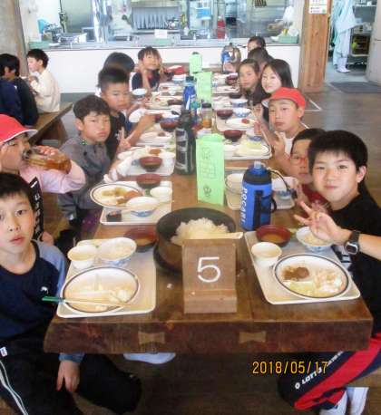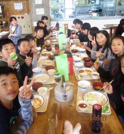 夕ご飯は,バイキング。少し疲れてきた様子のみんなでしたが,ごはんとお風呂で元気を取り戻しました。夜は,キャンプファイヤーです。