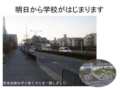 さて,明日から学校が始まります。学校のまわり,通学路の安全点検やゴミ等の回収をしなければなりません。