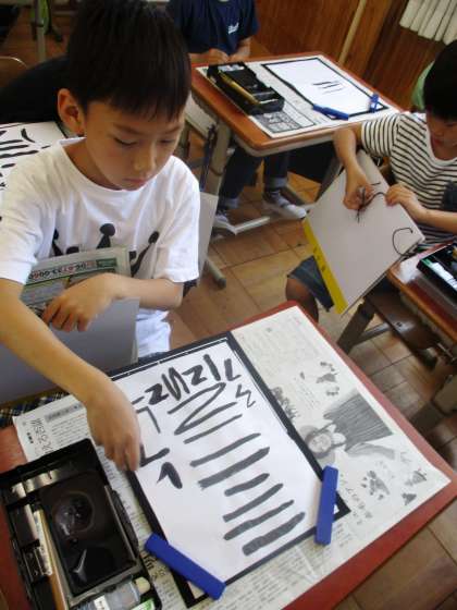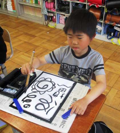 初めての毛筆です。準備の仕方からしっかりと確認しました。