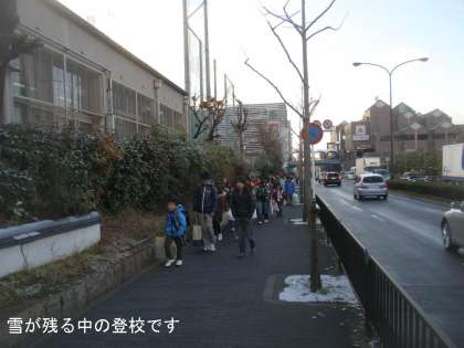 北の方の山は真っ白です。子どもたちも昨年12月(年末)よりも防寒着姿が目立ちました。