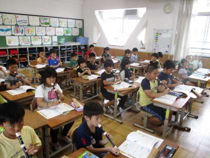 リコーダーで「シ」と「ラ」の練習をしました。タンギングにも気を付けてきれいな音が出るようになってきました。
