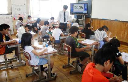 分数×分数の単元のテストをしました。集中して取り組んでいます。