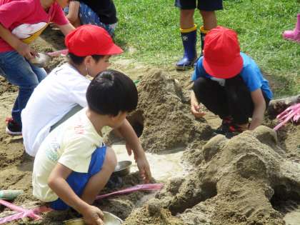 砂や土の感触を楽しみながら,造形遊びをしました。