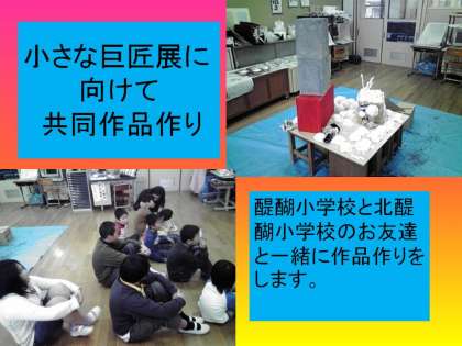 今日は,醍醐小学校まで行き,1月27日〜30日まで京都市美術館別館で行われる小さな巨匠展の作品作りをしました。