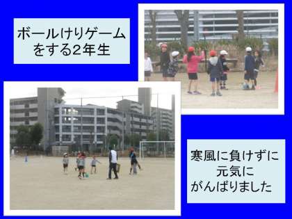 高学年になるとサッカーになりますが,2年生ではみんなで楽しくボールをけってゲームをします。