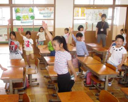 1年生は特別に,シャキトレ〜1年生バージョン〜に取り組んでいます。しっかり立つトレーニングから始めました。片足で立つのは難しいですが,少しずつ上手になっています。