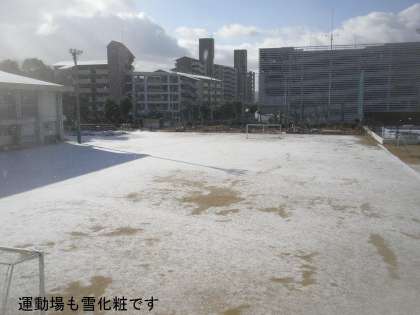 と,ホームページを更新していると,またまた雪が激しく降ってきました。凍結防止剤をまいている運動場も,あっという間に真っ白になりました。