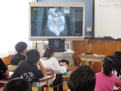 食べた物が体のどこを通っているのかを映像を見ながら学習しました。