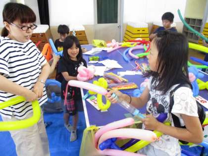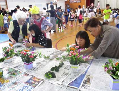 土曜学習の後,醍醐西社会福祉協議会の主催で,わかば祭りが開催されました。醍醐中央児童館の「よっちょれ」や地域団体の「太極拳」などの出し物の他,生け花教室,バルーンアート,駄菓子屋さんなど様々なブースでにぎわっていました。