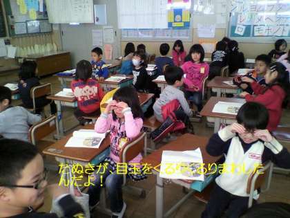 今日は、いたずらたぬきが、糸車をまわすまねをする場面を勉強しました。