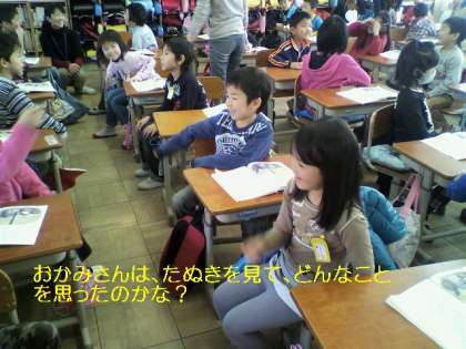国語の学習で、「たぬきの糸車」を勉強しています。