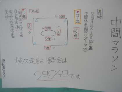 今日,校内に中間マラソンのお知らせがはり出されました。