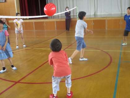 「風船バレー」と「しっぽとり遊び」をしました。