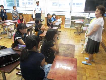 女性会の方に来ていただき,紙芝居や短冊作りをしていただき,エコについて考えました。みんなの願いが叶うといいですね。