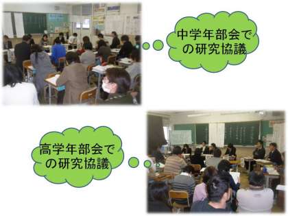 昨日は,全学年(7本)の授業を公開させていただきました。まだまだ不十分な取組で確立されたものまで至っていませんが,事後の分散会で多くの先生方に忌憚のないご意見・ご指導をいただきました。