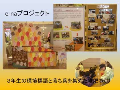 本校でも「e-naプロジェクト」と称して,落ち葉を堆肥にかえる取組や,環境標語つくりなどをしています。