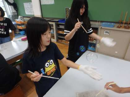 理科の学習で自由研究の進め方を学習しました。大切なことは「テーマ設定」です。テーマの設定の方法としては,1.身近な疑問から考える。2.授業の発展,継続内容をテーマにする。3.本やインターネットに載っているものを自分なりにアレンジする。の3つが考えられます。今日は,3.の本に載っている「はずむシャボン玉」づくりにチャレンジしました。そこから「どうすればもっと何回もはずむシャボン玉ができるのか。」というテーマを見つけ出すことができました。そのテーマの追究の仕方は,それぞれの立てた仮説によって変わってきます。同じテーマでもちがう自由研究になります。今日の学習を1つの参考にしてもらえれば幸いです。