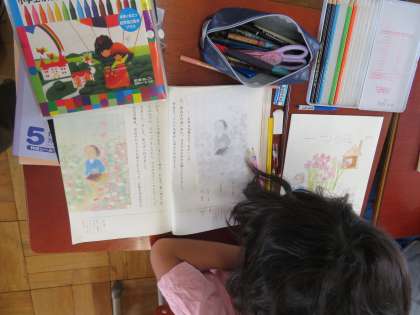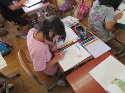 「一つの花」の作品紹介を作成しています。おおまかな内容や自分の心に残った場面を文章に表しています。
