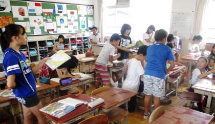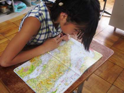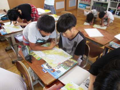 恒例の地図帳ゲーム!みんな集中しながらも,盛り上がっています。