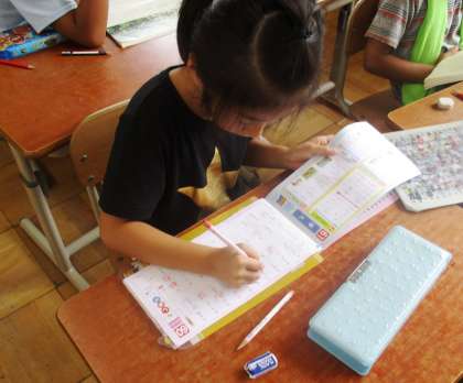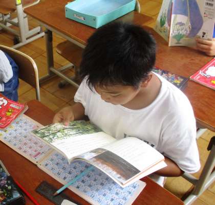 漢字の学習をした後,『里山は,未来の風景』の音読をしています。すらすら読めるように,一生懸命練習しています。