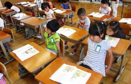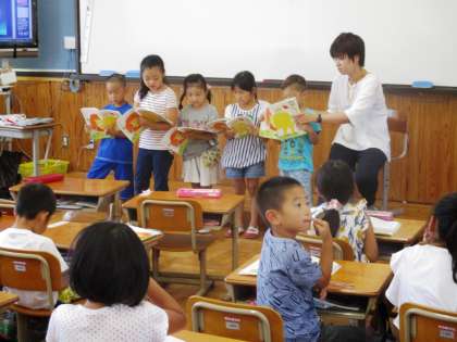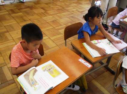 『おむすびころりん』の音読発表会をしました。みんな上手に読んでいます。