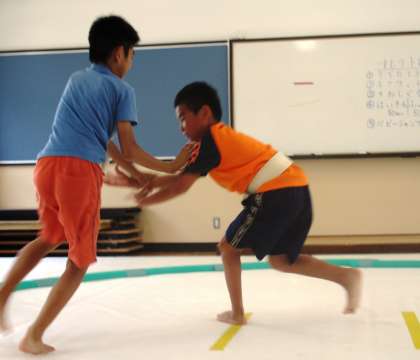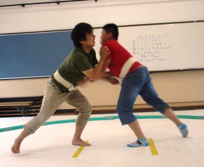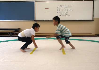 あwチームにわかれて,すもうをしました。盛り上がっています!