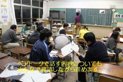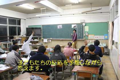 本校では,定期的に担任が模擬授業を行い,みんなで教材研究をしています。