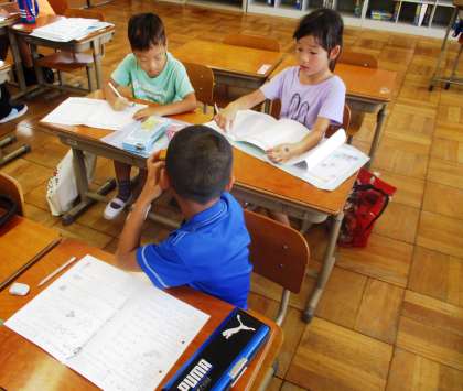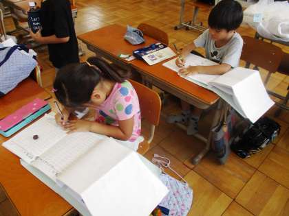 夏休みも朝8時45分から学習会に来てがんばっています。