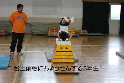 体育館では、3年生が跳び箱の学習に取り組んでいました。