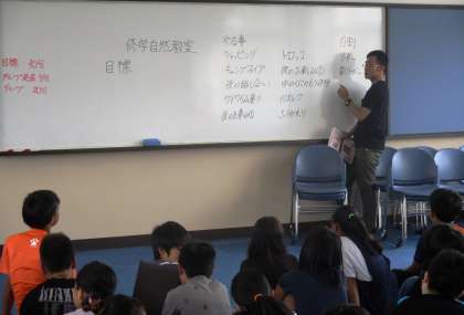 修学自然教室に向けて学年集会を行いました。取り組む内容から,目標について話し合い活動をしました。みんなで意見を出し合い,『元気で協力しあう醍醐西6年生』に決まりました。すてきな思い出にしましょう!