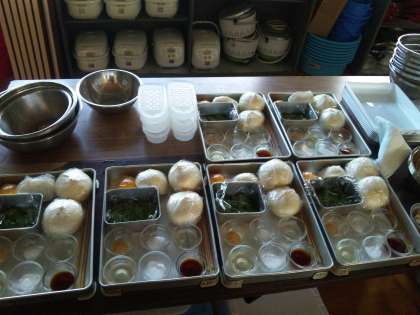 3・4校時と5・6校時の2回行われますが,料亭「木乃婦」のご主人で今日のゲストティーチャーである高橋拓児さんが,朝早くから学校に来てくださり,準備をしていただきました。