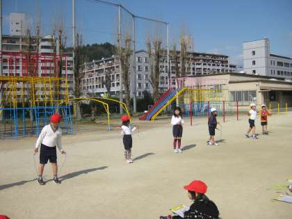 なわとびは「グーパーとび」「グーチョキとび」に挑戦しました。