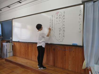 「うれしいことば」という単元で言ってもらってうれしかった経験について文章を書きます。どんなうれしいことばが出てくるでしょうか。人をうれしい気持ちにする言葉についてたくさん知ってほしいです。