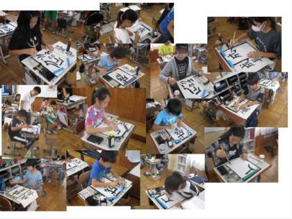 毛筆で「成長」という字を書きました。「左はらい」や「筆順に」気をつけて書きました。集中して取り組んでいます。