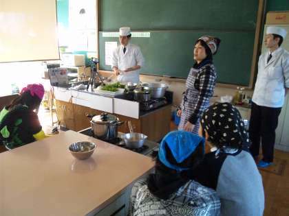 子どもたちは,いろいろな説明を聞いた後,かぶを生て食べてみて,その食感や味を確かめました。最初はいやすうな反応でしたが,食べて見るとほんのり甘くて,「柿みたいな味がする。」などの感想を出していました。また,かぶを湯がいてだしを加えることで,味に深まりが出て,「おいしい。」「おいしい。」と何度も味わっていました。