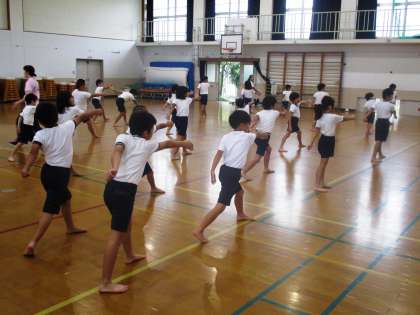 ロックソーランの練習をしています。3年生は初めてですが,4年生のようにかっこよく踊れるようにがんばります。
