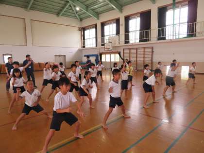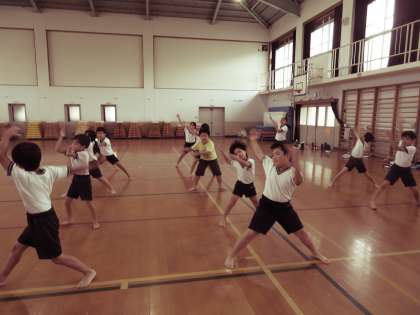 運動会の中学年団体種目「ロックソーラン〜共喜乱舞〜」の練習が本格的に始まりました。腰をしっかり落として,迫力のある踊りにしていきたいと思います。