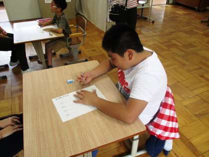 高学年は漢字のテストに取り組んでいます。しっかり覚えられたかな?