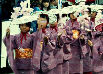 17日(祝月)に第28回醍醐ふれあいプラザが開催されました。開催に先立って行われた花見行列には,5年生と4年生の代表児童が参加しました。衣装を着こなし,堂々と行進していました。