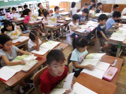 「お話クイズ」をしました。音読もがんばっています。