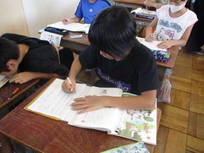 4年生に習った漢字を使って文を作っています。集中して考えています。たくさん考えられましたね。