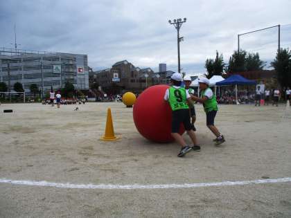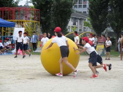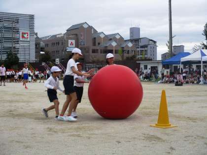 たてわり種目です。みんなで協力して大玉をころがしました!
