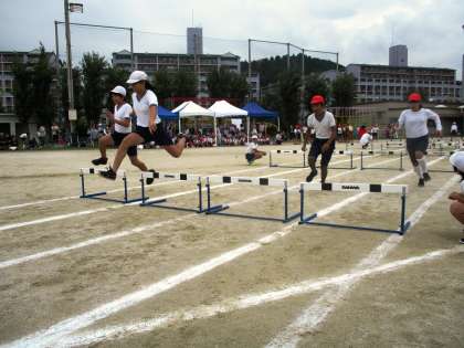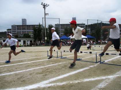 高学年の障害物走です。ハードルの飛び方もかっこいいです。