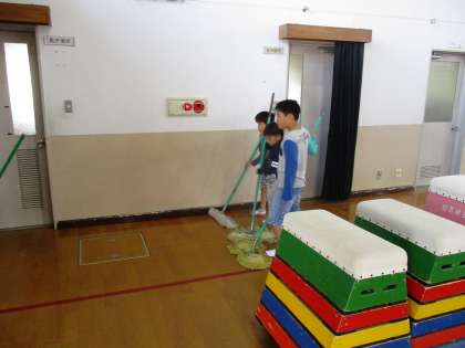 運動会での練習や片づけで汚れた体育館をみんなで協力してピカピカにしてくれました!