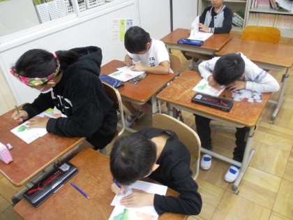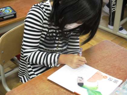 「ちいちゃんのかげおくり」のお話を紹介するための,本の帯を作っています。