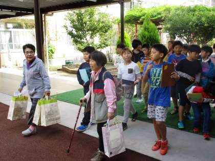 社会福祉協議会の方々と,醍醐西学区の一人住まいの高齢者のお宅を訪問し,お花と手紙をお渡ししました。4年生のみんなが来てくれることをとても楽しみに待っていただいていたようです。
