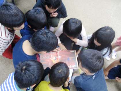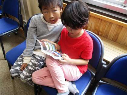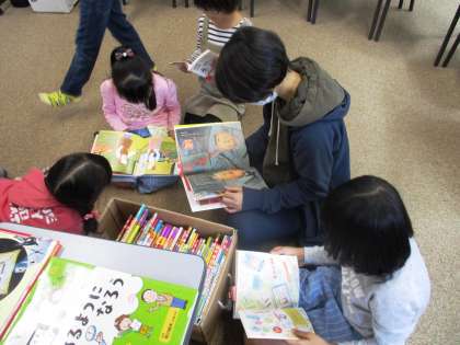 本屋さんに来ていただき,本を選んでいます。いろいろな本があるので,みんなで楽しく夢中になって読んでいます。