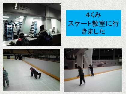 今日は西京極のアクアリーナにスケート教室に行きました。よその学校の子どもたちも一緒です。
